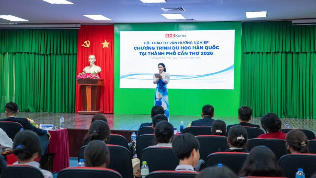 Ngày 11/04/2026, Công ty TNHH SHD Thành Công (SHD Korea) – thành viên thuộc hệ sinh thái SHD – đã tổ chức thành công Hội thảo Du học Hàn Quốc lần đầu tiên tại Thành phố Cần Thơ. Sự kiện không chỉ mang ý nghĩa cung cấp thông tin chính xác, minh bạch về chương trình du học Hàn Quốc mà còn là cầu nối giúp học sinh lớp 12 tại Cần Thơ định hình rõ ràng hơn con đường phát triển trong tương lai.