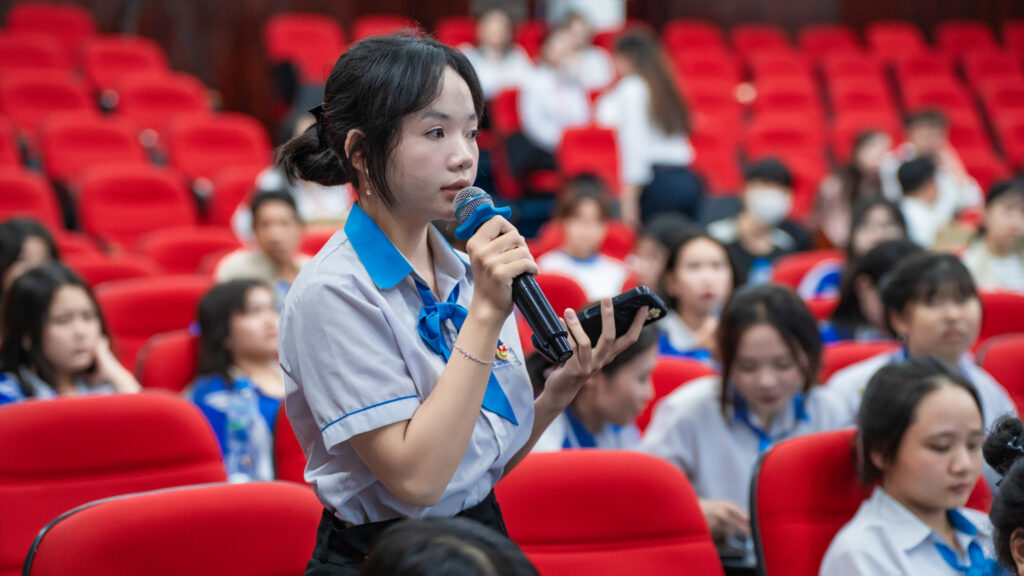 Phần giao lưu trực tiếp với các diễn giả đã diễn ra trong không khí sôi nổi. Nhiều câu hỏi thực tế từ học sinh và phụ huynh xoay quanh việc chọn ngành học, điều kiện tài chính, cơ hội việc làm và cuộc sống tại Hàn Quốc đã được giải đáp chi tiết. Sự tương tác tích cực này cho thấy mối quan tâm lớn của học sinh lớp 12 đối với hành trình du học và phát triển sự nghiệp quốc tế.